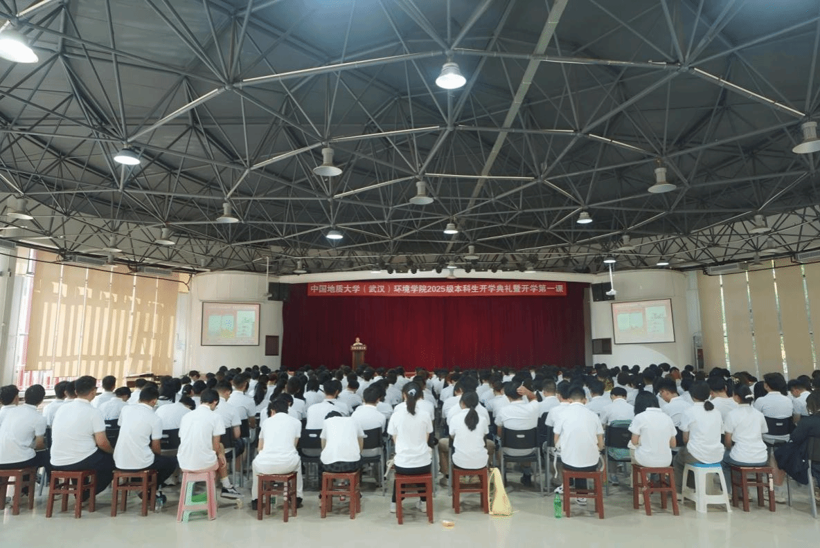 (通讯员陈俊男 摄影耿婧 编辑申墁烨)9月5日上午,9728太阳集团2025级本科新生开学典礼暨开学第一课在南望山校区西区大学生活动中心二楼演播厅举行。学院党委书记姜明敏、院长史建波,副院长柴波、孔少飞、学术副院长杜尧,水资源与水文地质系党支部副书记、045252班主任李仲夏,环境科学与工程系副主任、04H254班主任崔艳萍,生物科学与技术系主任、04H253班主任董依然,大气科学系老师、046252班主任谢风华,实验教学中心主任潘欢迎、学院办公室主任刘凤莲、学工组辅导员及2025级全体本科新生参会。辅导员陈俊男主持会议。