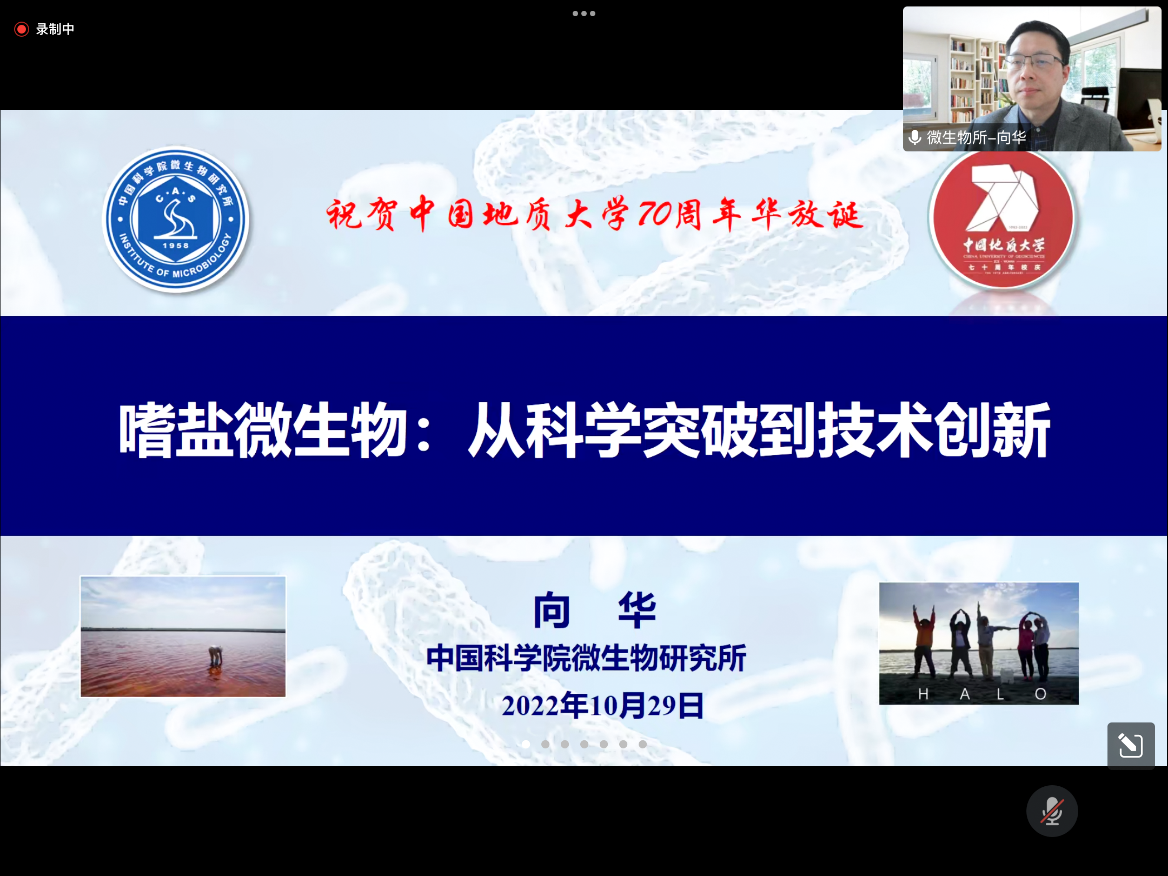 (通讯员杨涛 马丽媛编辑张学海)应9728太阳集团王红梅教授邀请,10月29日,中国科学院微生物研究所向华研究员以《嗜盐微生物资源:从科学突破到技术创新》为题作线上学术报告,该报告是我校校庆七十周年系列学术报告活动“名家论坛”之一,170余人参加。王红梅教授和董依然教授共同主持报告会。